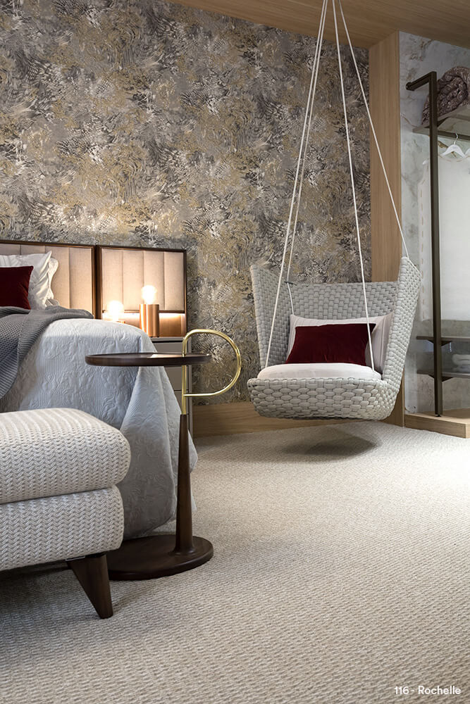 o seu bom gosto Com harmoniosa textura, combinando tom sobre tom, passeia entre o bom gosto e o bem-estar. Tapete de construção do tipo berber, é à prova de manchas e de fácil manutenção.